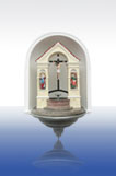 Das neue Modell des Ravensburger Kreuzbrunnens konzipierte Joachim Heim gleich in drei Varianten: Als Frei-, Kapitel- und Nischenvariante — je nachdem ob das Modell frei aufgestellt, aufgehängt oder in einer Nische platziert werden soll.